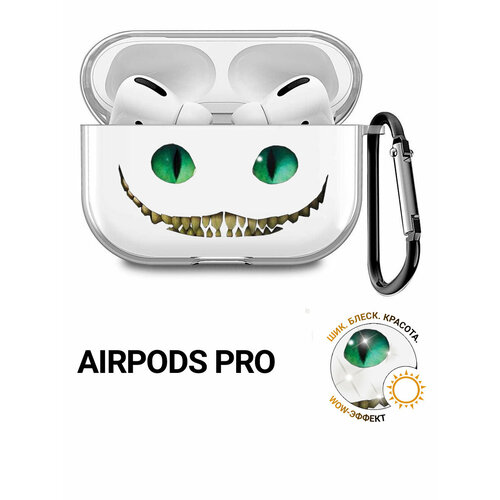 Прозрачный чехол для наушников Apple AirPods Pro / АирПодс Про силиконовый с 3D принтом "Cheshire Cat"