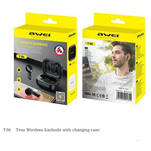 Беспроводные наушники TWS Awei T36 IPX4/BT5.0/45mAh/4ч черные