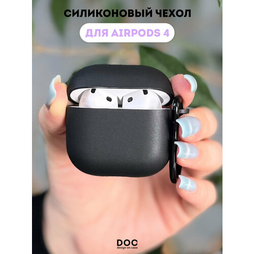 Силиконовый чехол DesignOnCase для беспроводных наушников AirPods 4, с карабином, матовый, Черный