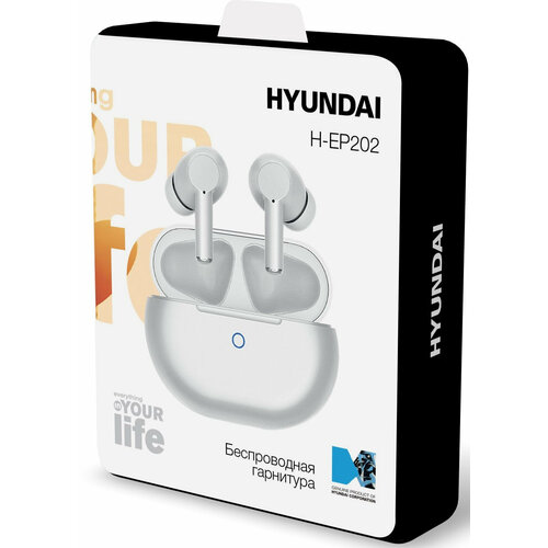 Гарнитура вкладыши Hyundai H-EP201 белый гл. беспроводные bluetooth в ушной раковине