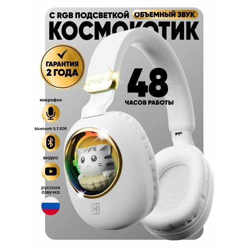 Беспроводные наушники "IHI" с котиками, RGB подсветкой, Bluetooth 5,3