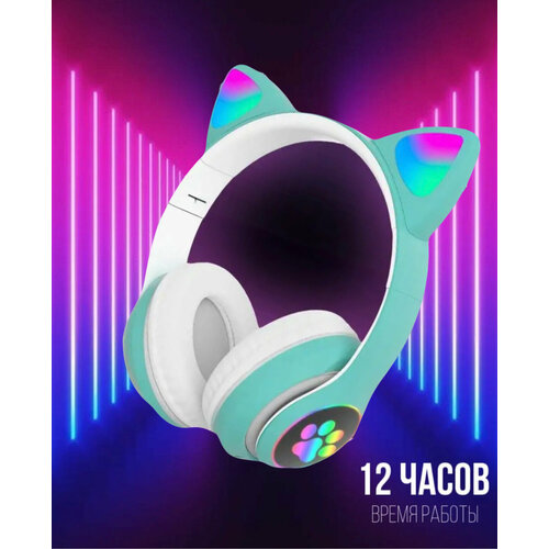 Светящиеся наушники с кошачьими ушками JBH, зеленые, Беспроводные наушники детские, Ободок