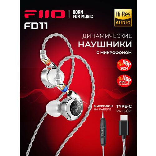 Проводные наушники FIIO FD11 Type C silver, динамические с микрофоном