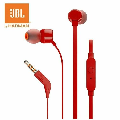 Наушники внутриканальные JBL T110 с микрофоном, 3.5 мм, (JBLT110RED)