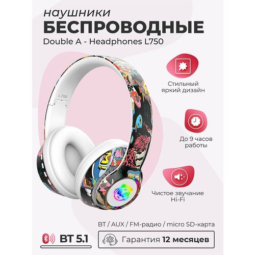 Наушники беспроводные накладные большие полноразмерные Double A L750 TWS с микрофоном и шумоподавлением для телефона, телевизора и компьютера, белые