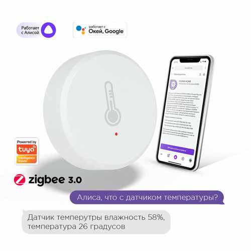 Умный Zigbee 3.0 датчик температуры и влажности с с Алисой и Google Assistant версия Lite