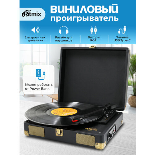 Виниловый проигрыватель RITMIX LP-100 Black, питание от USB.