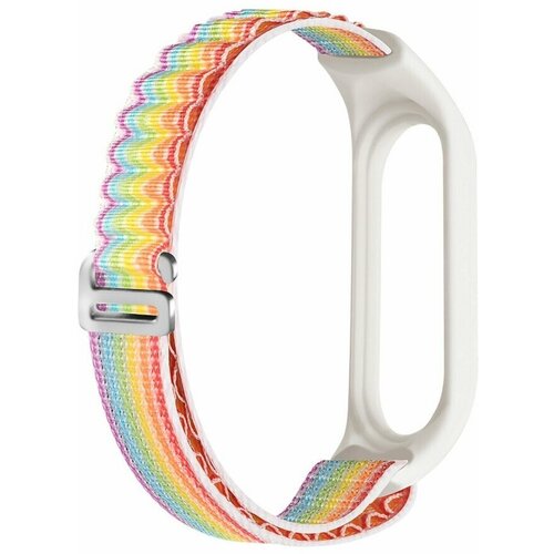 Ремешок Альпийская петля для Xiaomi Mi Band 7 / Mi Band 6 / Mi Band 5 / Mi Band 4 / Mi Band 3 (белый + радужный)