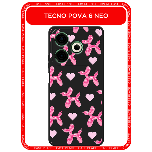 Черный матовый чехол на Tecno Pova 6 Neo / Техно Пова 6 Нео с принтом balloon dogs pink