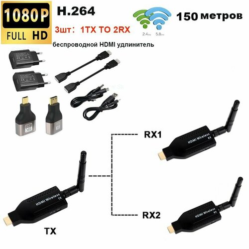 Комплект HDMI TX/RX для беспроводной передачи видео | До 150 м, для камер и экранов