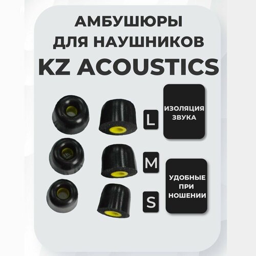 Цены на Пенные амбушюры KZ с силиконовой вставкой для внутриканальных наушников (комплект из 3 пар) черный в г. Санкт-Петербург