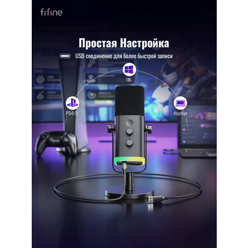 Микрофон проводной Fifine T669, комплектация: микрофон, разъем: USB Type-C
