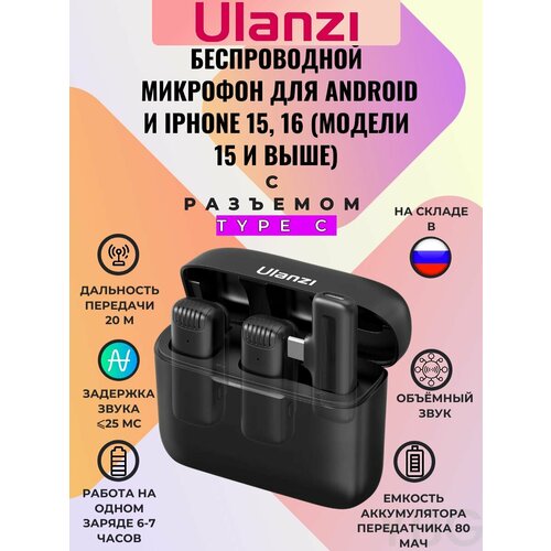 Беспроводной петличный микрофон Ulanzi J12 Black Type-C