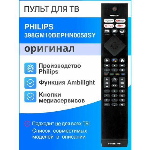 PHILIPS 398GR10BEPHN0056HR (оригинал) пульт для Smart телевизоров