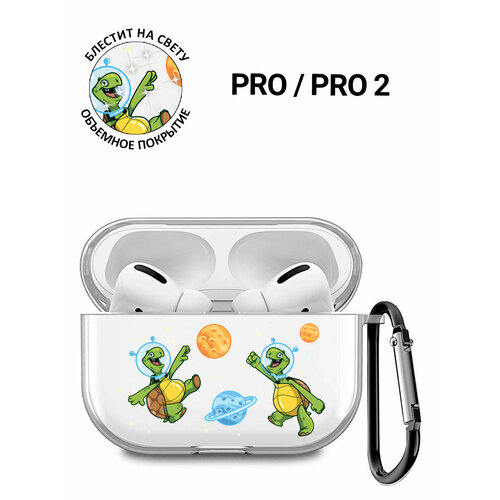 Прозрачный чехол для наушников Apple AirPods Pro / АирПодс Про силиконовый с 3D принтом "CosmoTurtles"