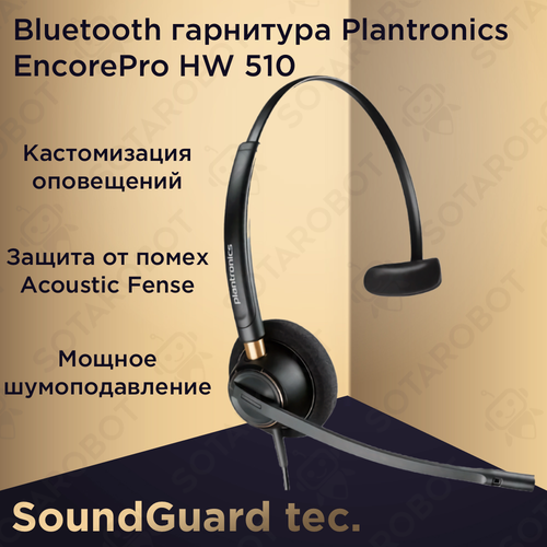 Plantronics EncorePro HW510/Профессиональная гарнитура с шумоподавлением /Гарнитура для офиса /Наушники для Call-центра /На одно ухо / для компьютера