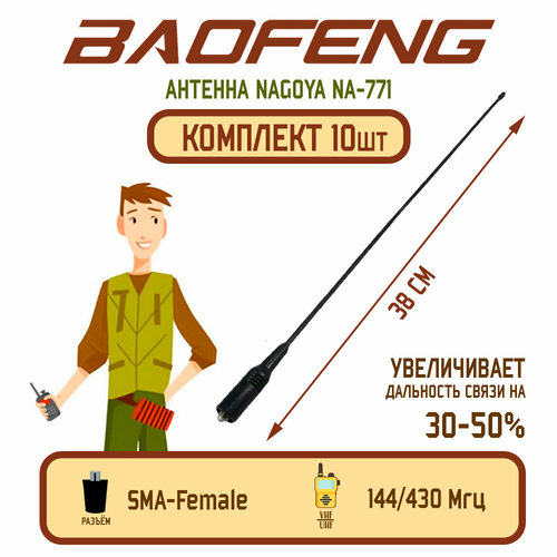Антенна для рации Baofeng UV-5R Nagoya NA-771 Female 38 см, 144/430 МГц, комплект 10 шт