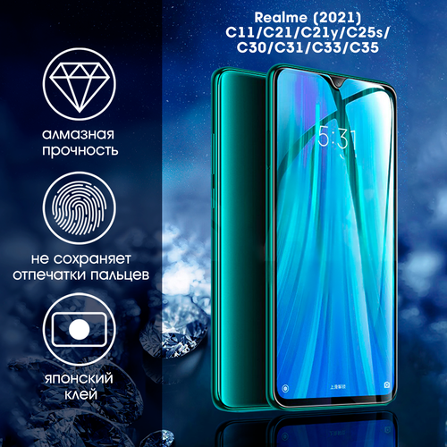Защитное стекло на телефон, AMFOX, для Xiaomi Realme C30/C31/С33/С35, "Full glue", с черной рамкой, защитка на реалми ксиаоми, черное