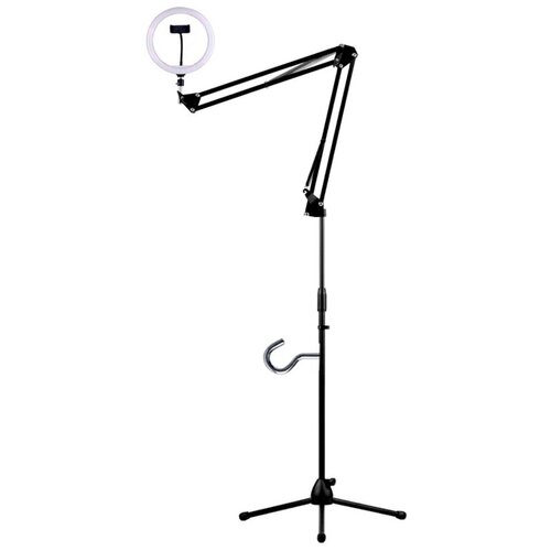 Кольцевая лампа ST-5226 диаметр 26 см на усиленном пантографе с держателем телефона и шарниром на напольном штативе Ml с крючком для противовеса