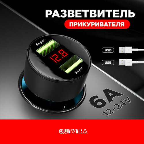 Авто ЗУ, быстрая зарядка в 2 USB с вольтметром