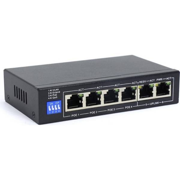 6-портовый коммутатор Amatek AN-S6P4M 100 Мбит/с с PoE+ до 60Вт 7000338 100041860407