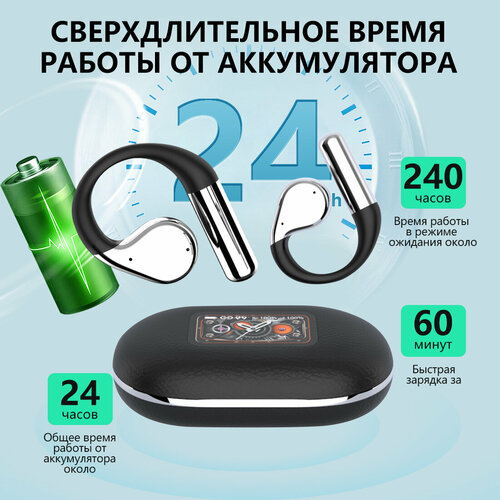 Спортивные наушники, наушники беспроводные с дисплеем, заушным креплением, гарнитура Bluetooth с HD микрофоном, Чёрный
