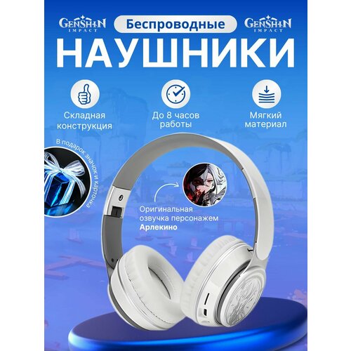 Беспроводные Bluetooth наушники Genshin Impact Геншин Импакт Арлекино с микрофоном, блютуз гарнитура для телефона