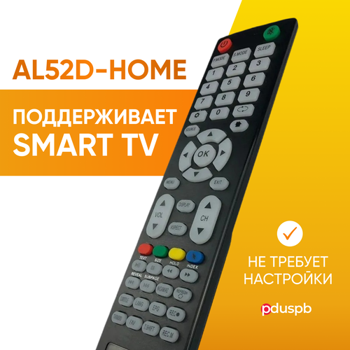 Пульт ду AL52D-HOME для SMART TV телевизора Витязь (VITYAZ) BQ ECON Hartens OLTO BAFF Akai STRAUS Supra Erisson Telefunken HIBERG Blackton Skyline CROWN / Смарт ТВ (RC19 SMART, RC29)