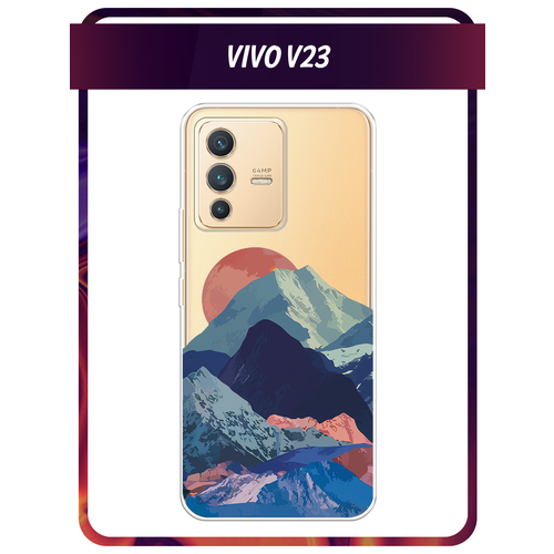 Чехол на Vivo V23 / Виво V23 с принтом Закат в снежных горах, прозрачный