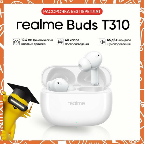 Наушники realme Buds T310, Bluetooth 5.4, ANC, влагозащита, белые
