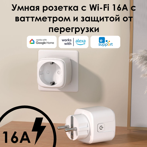 Умная розетка с Wi-Fi 16А с ваттметром и защитой от перегрузки (работает с Яндекс Алиса и Google Home) (Д)