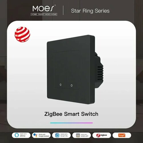 Умный сенсорный выключатель двухкнопочный Moes Wi-Fi+RF с Алисой