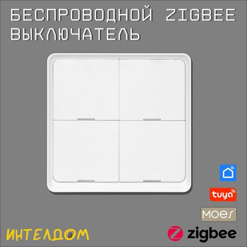 Беспроводной 4-клавишный выключатель Zigbee MOES белый