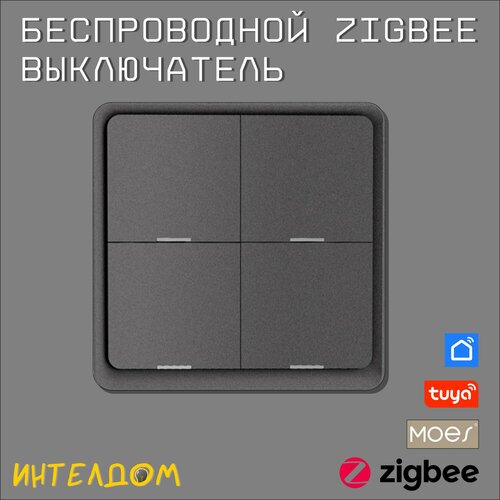 Беспроводной 4-клавишный выключатель Zigbee MOES серый