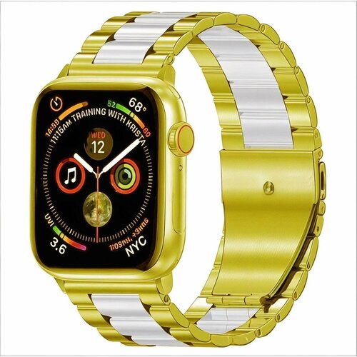 Металлический блочный ремешок для Apple Watch 1-9, SE, ULTRA 42-44-45-49 мм, золотой-белый