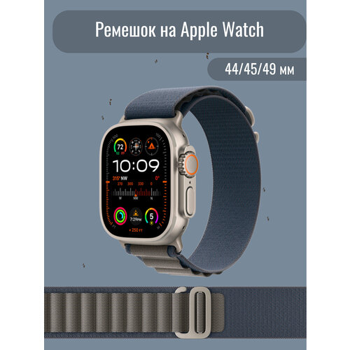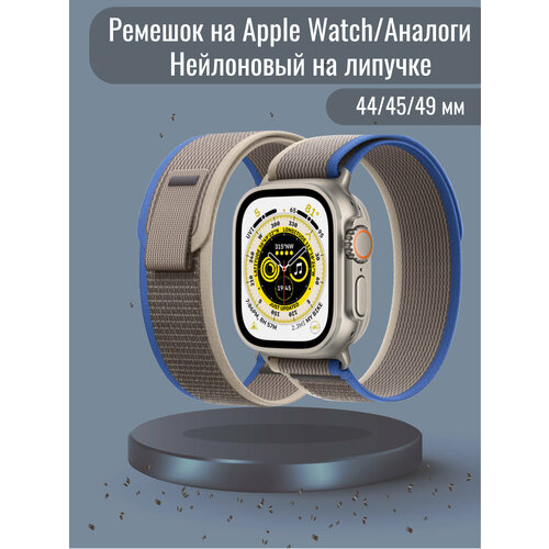 Ремешок нейлоновый Trail Loop Apple Watch для Series Ultra, 8, 7, 6, 5, 4 серый-синий 42/44/45/49 мм
