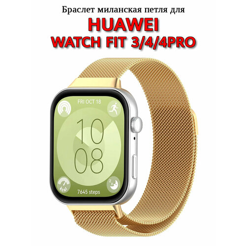 Ремешок для часов Huawei Watch Fit 3 / Huawei Watch Fit 4 / 4 Pro, миланская петля. Золотистый.