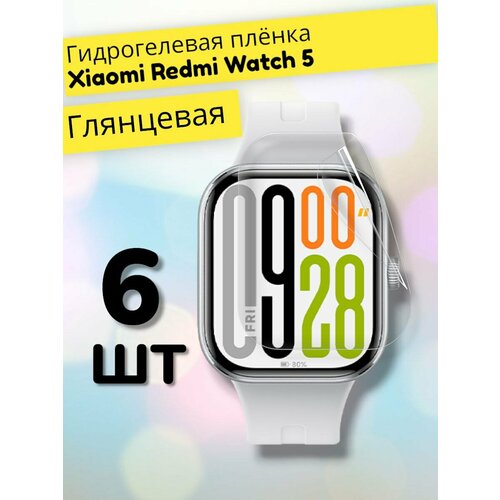 Гидрогелевая защитная пленка (Глянец) на смарт-часы Xiaomi Redmi Watch 5 (6шт)/бронепленка редми вотч 5