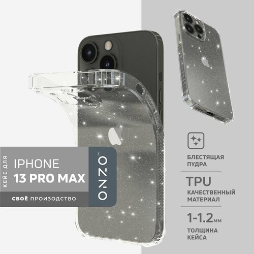 Чехол ONZO SPARKL для Apple iPhone 13 Pro Max, прозрачный (серебряные блестки)