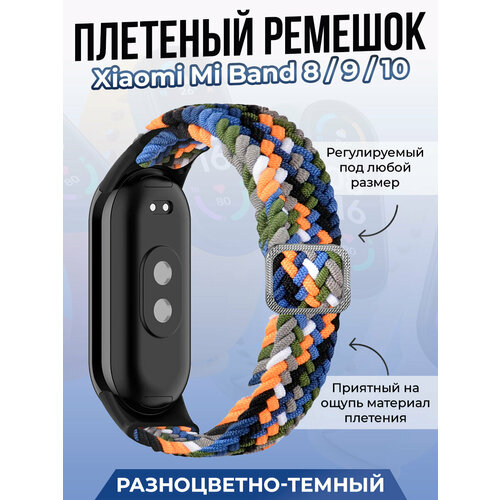 Плетеный ремешок для Xiaomi Mi Band 8/9/10, регулируемый под любой размер, разноцветно-темный
