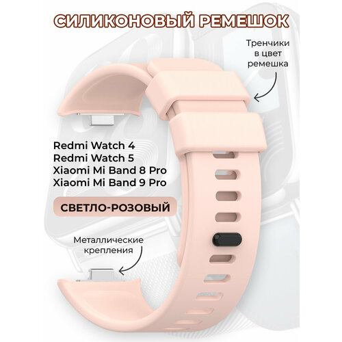 Силиконовый ремешок для Redmi Watch 4/5 и Xiaomi Mi Band 8 Pro/9 Pro, светло-розовый
