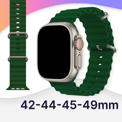 Силиконовый ремешок Ocean Band на смарт часы Apple Watch 1-9, SE, Ultra 42-44-45-49 мм / Браслет для Эпл Вотч 1, 2, 3, 4, 5, 6, 7, 8, 9, СЕ, Ультра / Зеленый