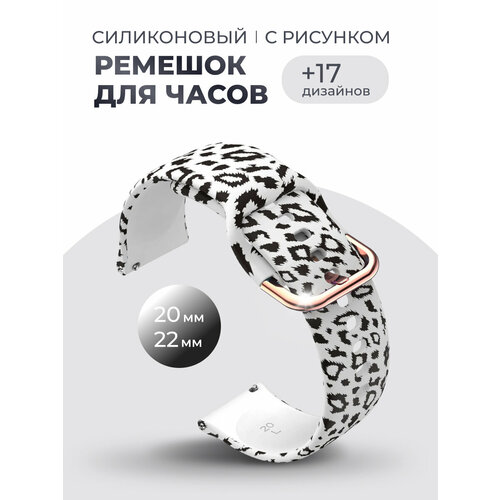Универсальный силиконовый ремешок для часов 22 мм, SILICON-3355-LEOPARDWHITE22