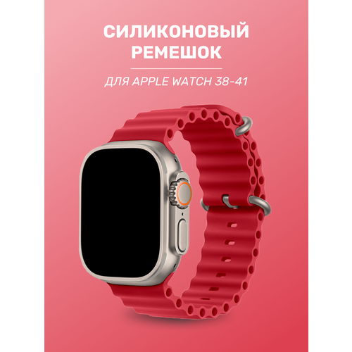 Силиконовый ребристый ремешок для Apple Watch 38/40/41mm / Спортивный браслет на часы Эпл Вотч 1-9, SE серии / Красный
