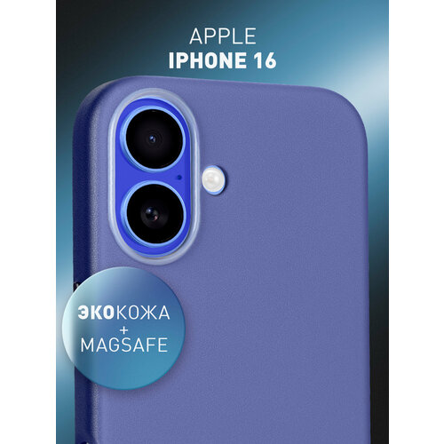 Чехол с MagSafe Rosco для Apple iPhone 16 (Айфон 16), защита камеры, экокожа, ультрамариновый