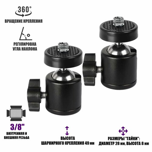 Шарнирное крепление для штатива для съемки, внешняя резьба 3/8, внутренняя резьба 3/8, 2 шт