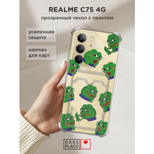 Чехол на Realme C75 4G (Реалми C75 4G) с картой и принтом Pepe frog heart pattern