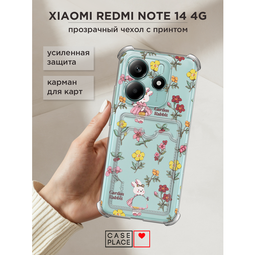 Чехол на Xiaomi Redmi Note 14 4G (Редми Нот 14 4G) с картой и принтом Садовый кролик