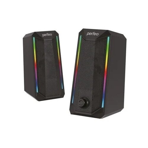 Компьютерные колонки 2.0 Perfeo Oreol, 2х3, LED подсветка, чёрные 7705854