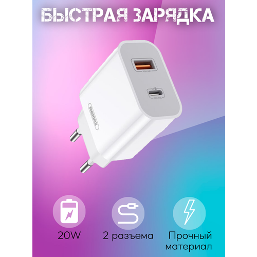 Сетевое зарядное устройство СЗУ 2USB-A/C PD 20W Remax RP-U68